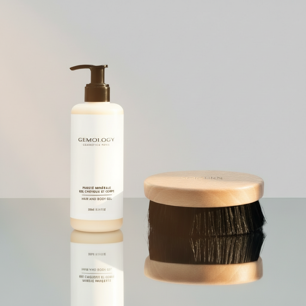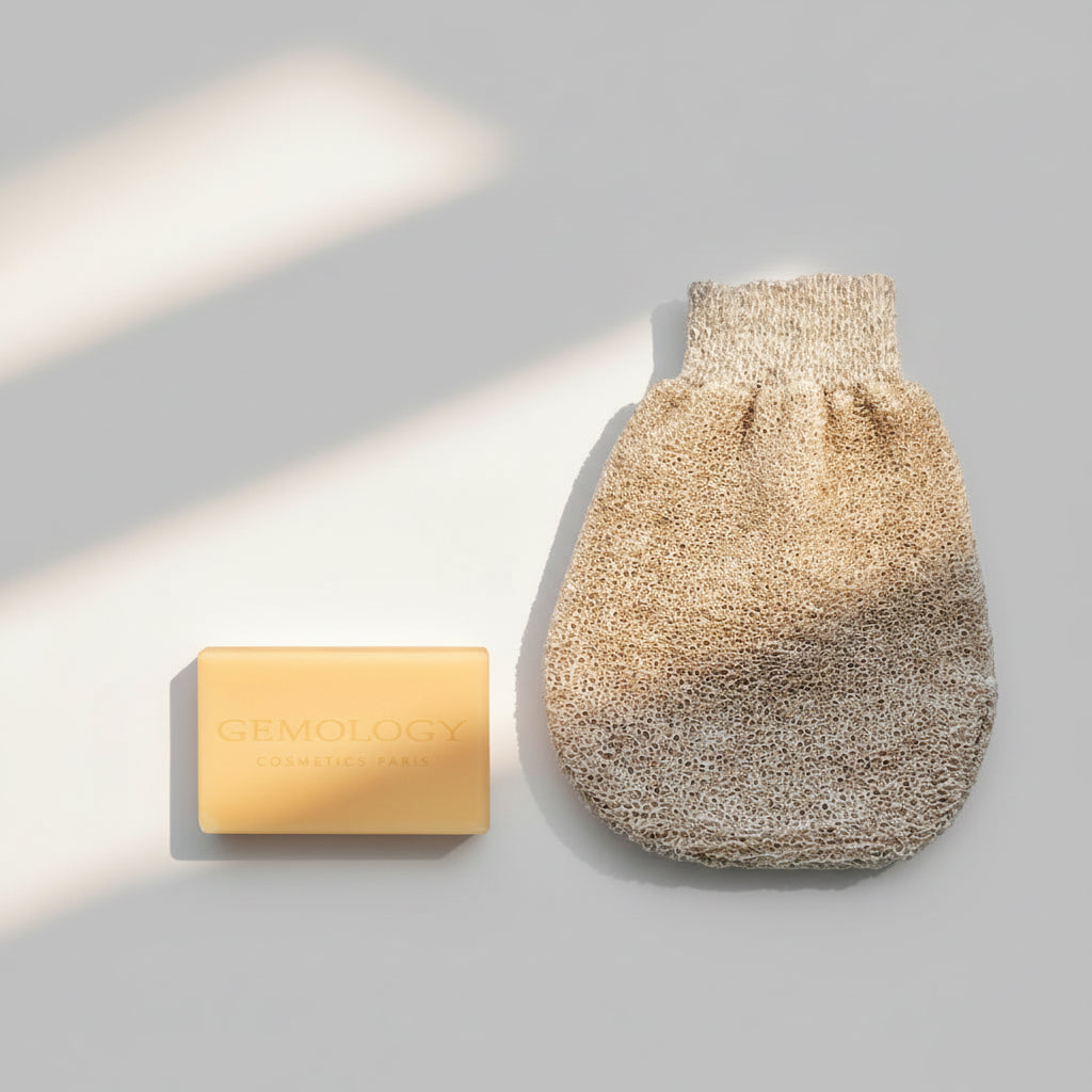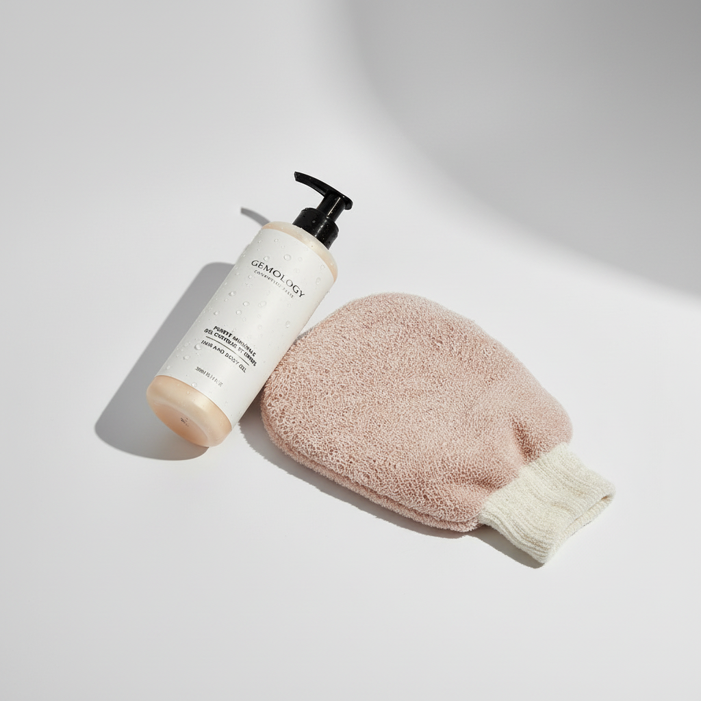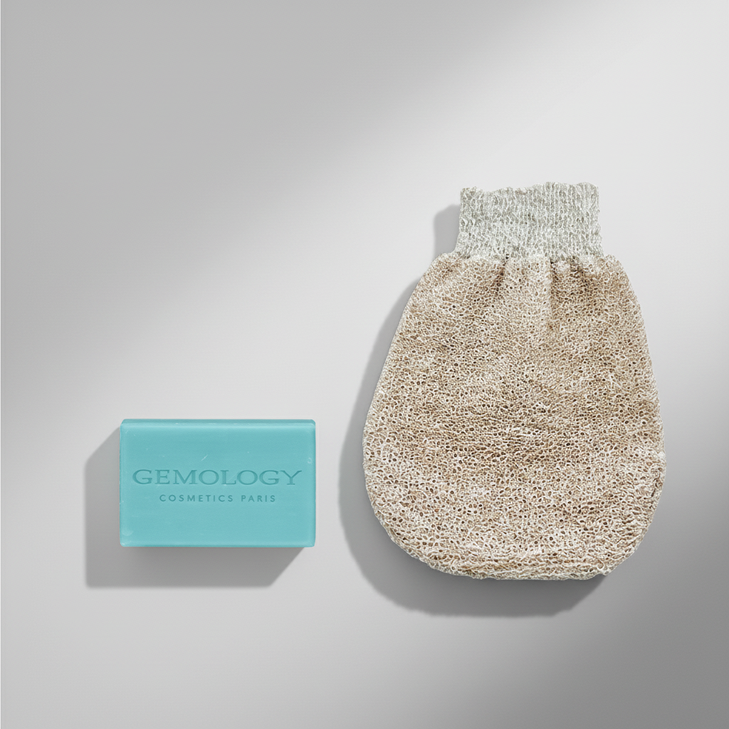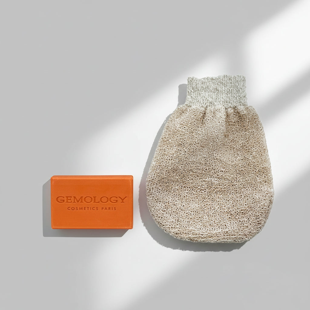 - Das Body Ritual Set besteht aus einem unserer Embrace Körper-Peelinghandschuhe oder unserer Embrace Ionen-Bronze Körper-Trockenbürste sowie einer Edelsteinseife oder einem Duschgel unseres Beauty-Partners Gemology.