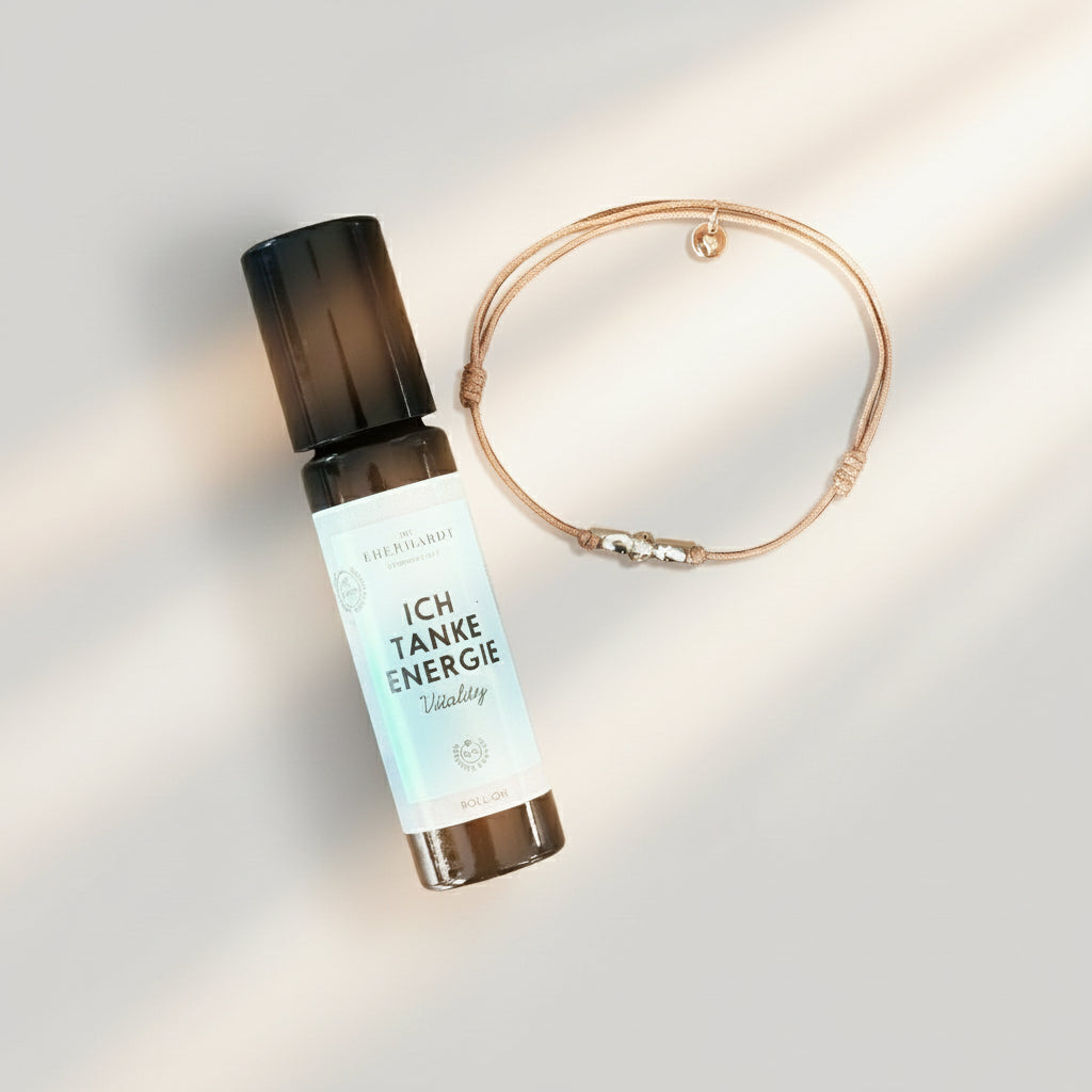 Gemeinsam entfalten Armband und Roll-On ihre Wirkung auf zwei Ebenen: Der Duft stimuliert die Sinne, während die Energie der Steine dich sanft daran erinnert, präsent zu bleiben und dein inneres Feuer bewusst zu nähren. Ein Ritual, das Kraft und Ruhe zugleich schenkt – überall, wo du bist.