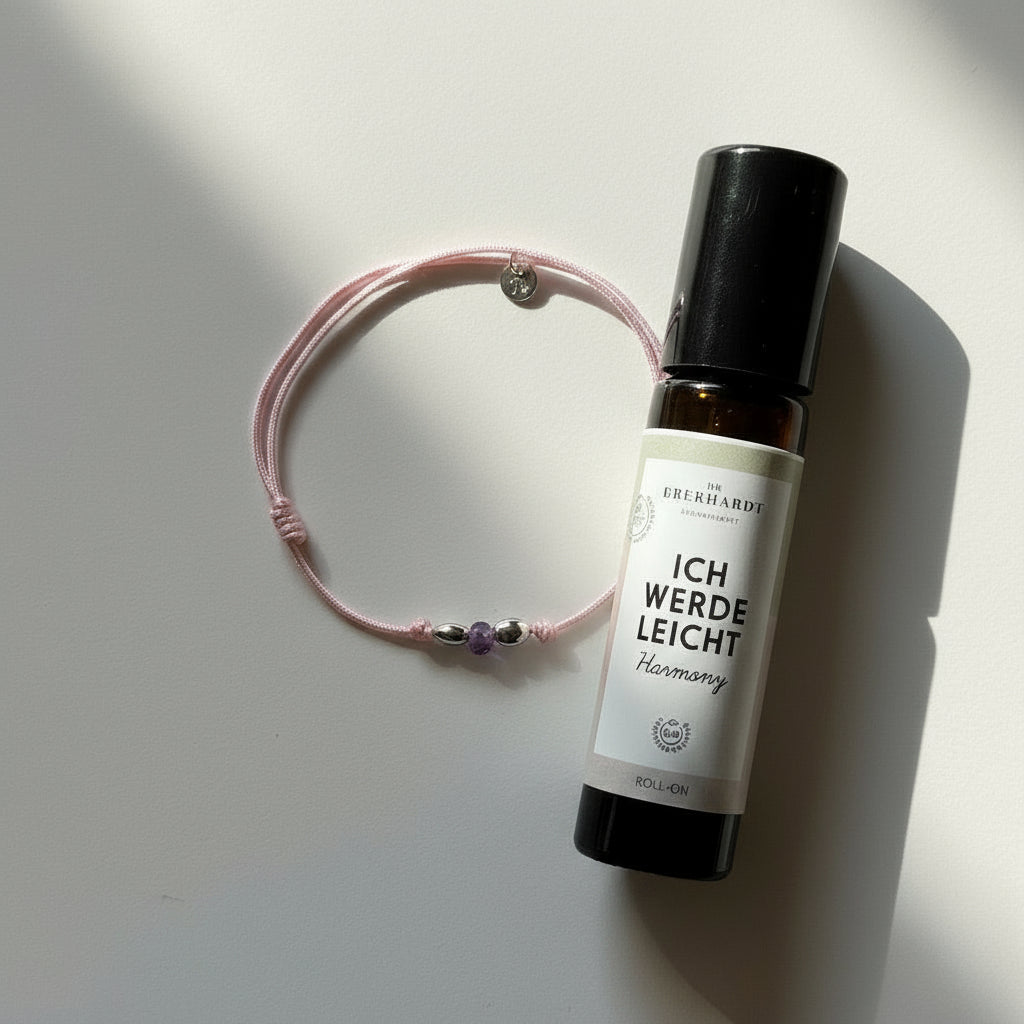 Armband und Roll-On entfalten gemeinsam eine wohltuende Balance aus Duft, Energie und Symbolik – ein Ritual, das dich begleitet, wenn du Ruhe suchst, Klarheit brauchst oder einfach leichter und entspannter durchs Leben gehen möchtest.